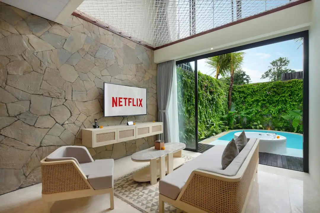 - LED TV, Netflix channel, Smart device, Youtube access, Spotify access, bluetooth speaker,