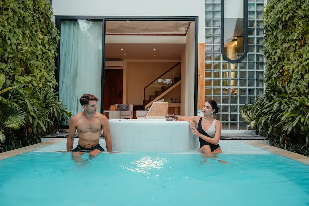 Part of Astera Resort Canggu, this a modern, tech-savvy romantic retreat designed for couples or honeymooners seeking privacy and luxury in Bali’s trendy Canggu area. A chic two-level design with a stylish bedroom upstairs and living space downstairs, blending contemporary architecture with cozy comfort. Enjoy a refreshing dip in your private swimming pool or unwind in the outdoor Jacuzzi, perfect for romantic moments or a relaxing soak under the stars. The villa is equipped with smart room controls, including lighting, air conditioning, and entertainment systems—all adjustable from a smart panel or device. Ideal for couples, it offers an intimate setting with modern décor, mood lighting, and Instagram-worthy aesthetics. just minutes from cafes, beach clubs, and Batu Bolong Beach, it offers the perfect mix of serenity and vibrant Bali vibes.
