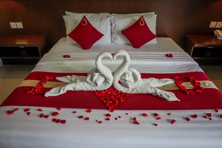 * Decor on bed wording "Happy Honeymoon"/ "Happy Anniversary" = IDR 300.000