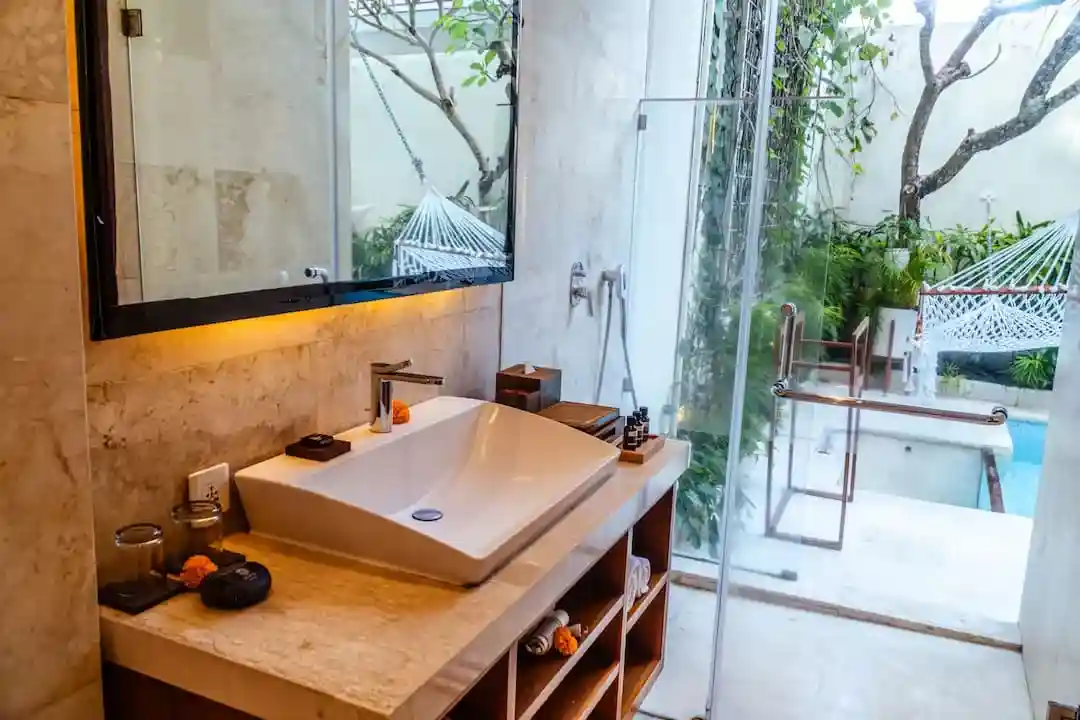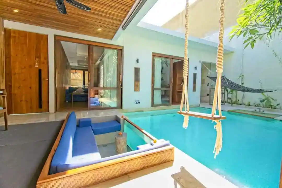 Sana Vie Villa offers lovely and romantic villa for honeymoon in Seminyak Bali, minutes drive away to trendy and chic Seminyak. Sana Vie Villa featuring 4 units Royal Smart One Bedroom Private Pool Villa which is completed with lovely outdoor Bathtub, Swing, Hammock & relaxing sunken dinning area. The villa only 10 minutes drive to Jalan Petitenget which the best restaurants and cafes in Bali, 15 minutes away from Batu Belig Beach where one of the most popular beach in Seminyak. The design is combining modern Balinese and Japanese concept, the team made every single material with own design and passion. Sana Vie is perfect for honeymooners and couple to celebrate lovely moment together at private pool villa Bali.